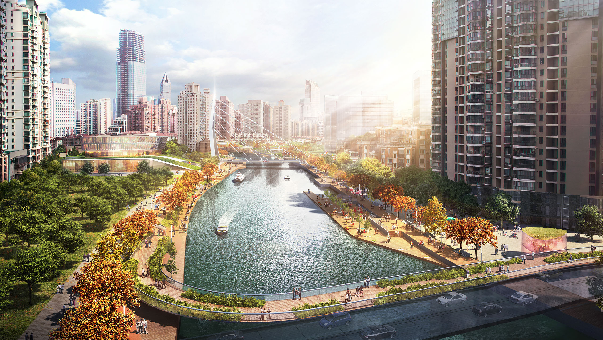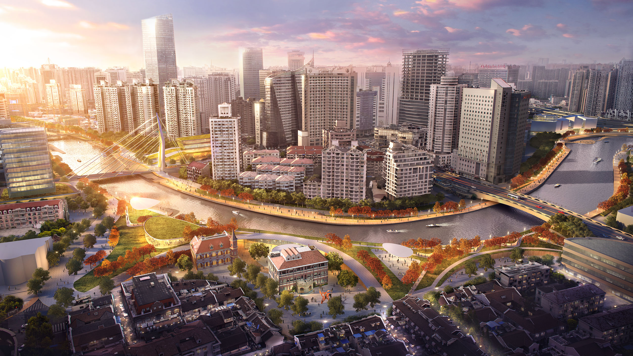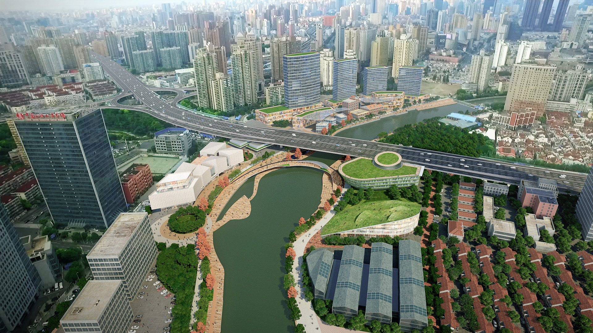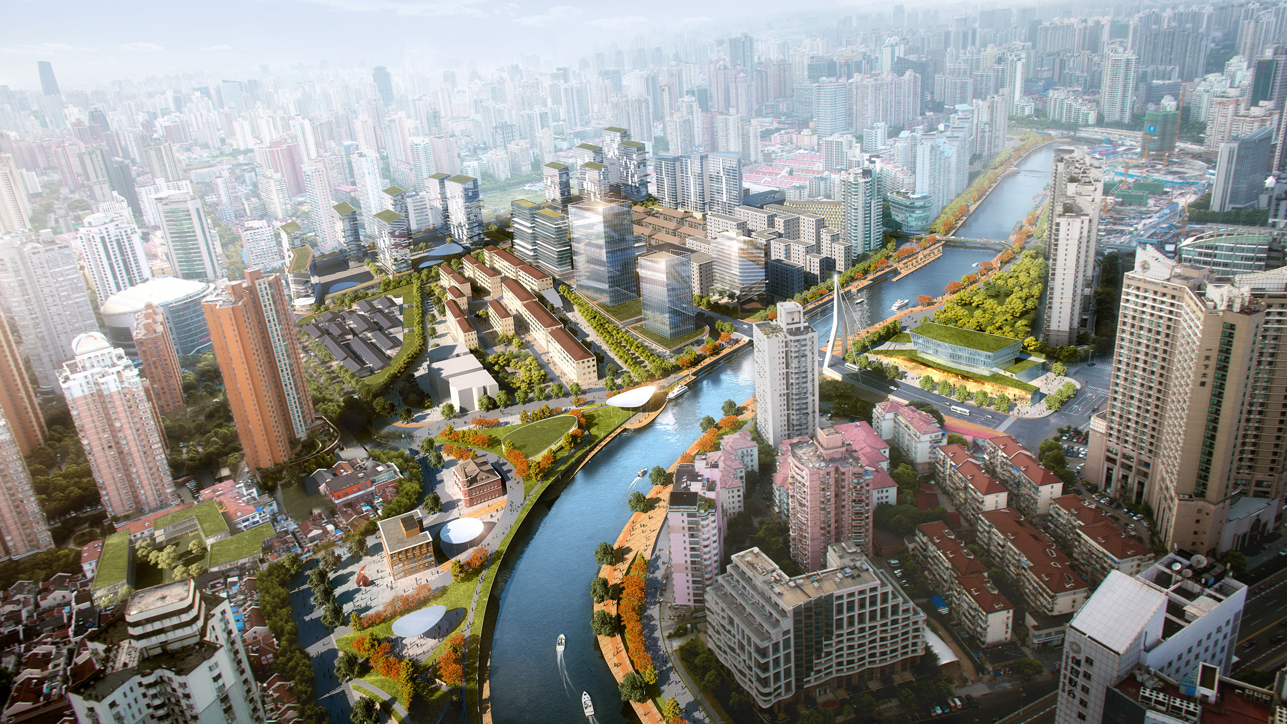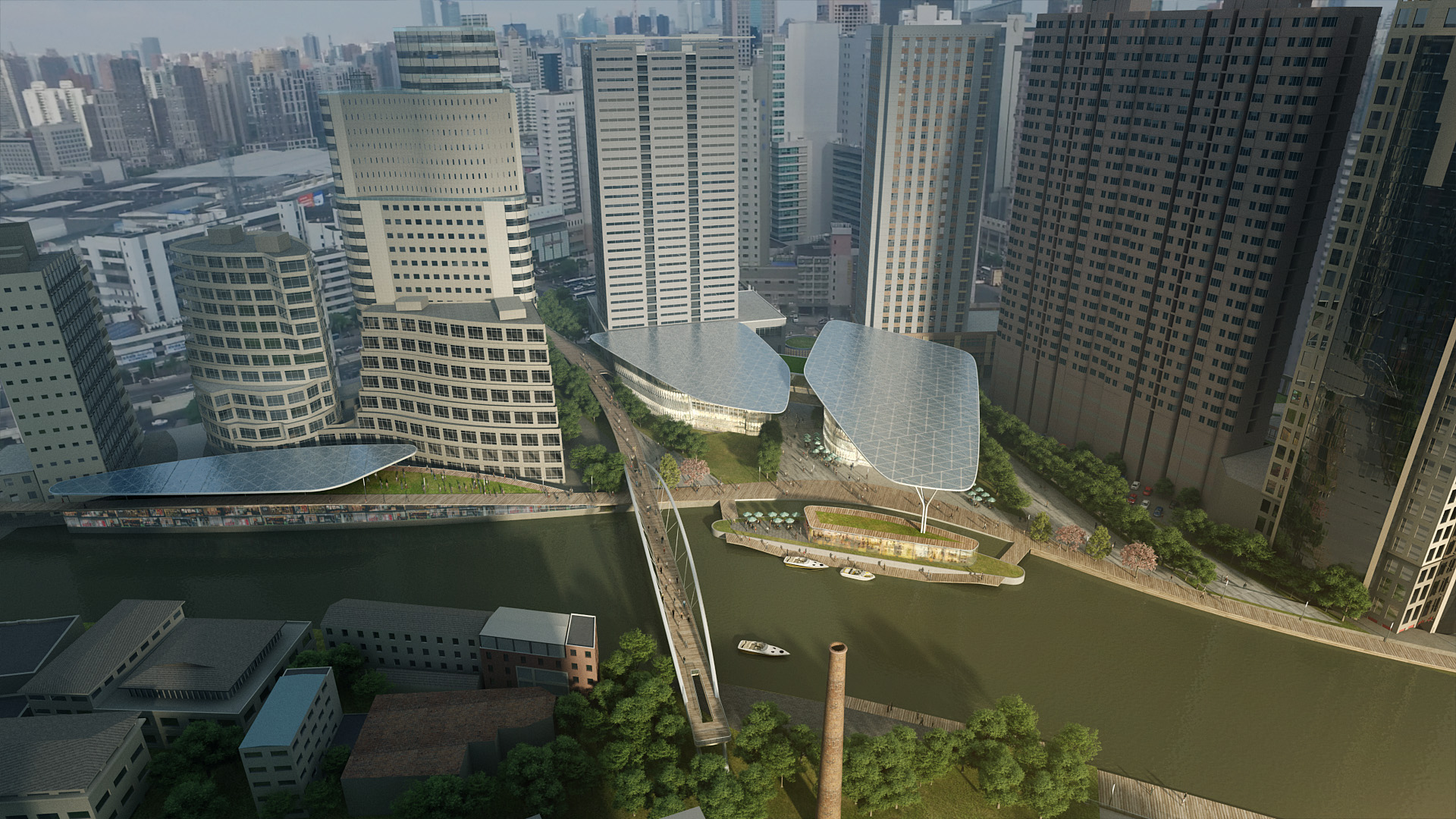 Final Submission for the redevelopment of Suzhou Creek in Shanghai. This plot links the main Northern rail connection to the popular M50 Artistic commune within the city.