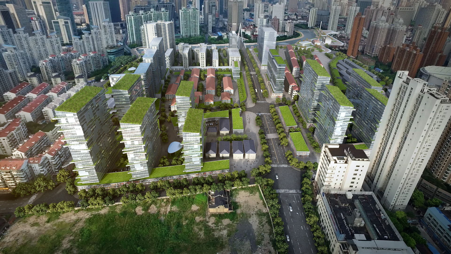 Final Submission for the redevelopment of Suzhou Creek in Shanghai. This plot links the main Northern rail connection to the popular M50 Artistic commune within the city.
